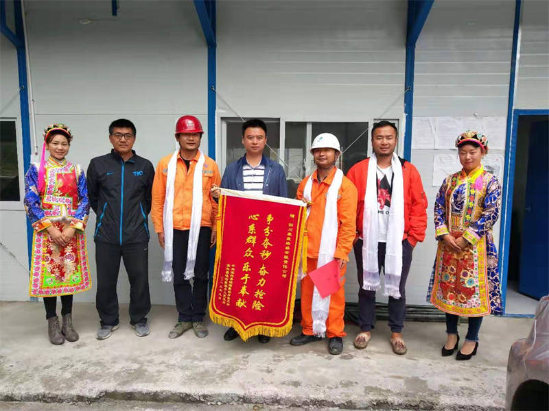 9月10日,中共寶興縣磽磧藏族鄉(xiāng)委員會(huì)、寶興縣磽磧藏族鄉(xiāng)人民政府敲鑼打鼓將一面“爭分奪秒,奮力搶險(xiǎn);心系群眾,樂于奉獻(xiàn)”的十六字錦旗和一封感謝信送到了雅安交建集團(tuán)路橋公司寶興駐地。表達(dá)了寶興人民對(duì)交建集團(tuán)在“8·22”特大洪災(zāi)抗洪搶險(xiǎn)中為當(dāng)?shù)乩习傩兆鰧?shí)事、解危難的感激之情。
