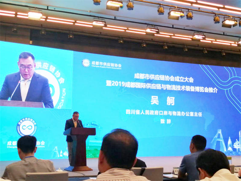 9月10日,成都市供應鏈協(xié)會成立大會暨2019中國(成都)國際供應鏈與物流技術(shù)裝備推介會在四川成都隆重舉行。雅安交建集團副總經(jīng)理杜峻率無水港公司一行應邀參會。四川省口岸與物流辦主任吳舸,成都市副市長劉筱柳,省、市相關(guān)領(lǐng)導出席并致辭。