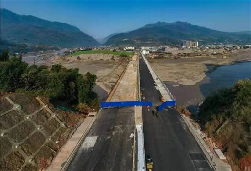 12月24日,雅安多營(yíng)青衣江大橋已貫通的半幅橋面和兩端引道已完成路面鋪設(shè)和護(hù)欄安裝,另半幅橋面完成澆筑,開(kāi)始橋面鋪設(shè),大橋即將雙幅貫通。