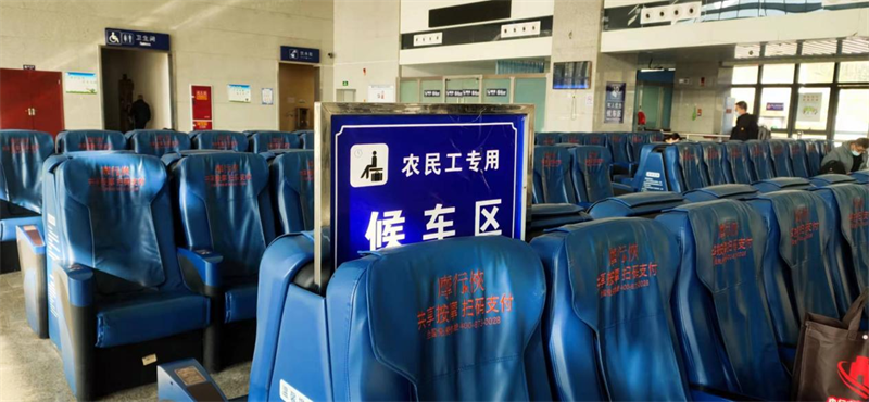 三是設(shè)置專(zhuān)門(mén)候車(chē)區(qū)。專(zhuān)設(shè)農(nóng)民工候車(chē)區(qū),配備軟座,方便農(nóng)民工朋友更好的候車(chē)休息,檢票口開(kāi)通“刷臉驗(yàn)票”及“人工通道”,安排工作人員引導(dǎo)農(nóng)民工朋友方便、快捷地乘坐客車(chē)。