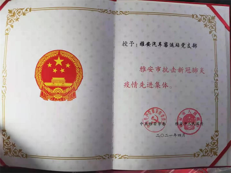 今年4月,蜀通公司雅安汽車(chē)客運(yùn)站黨支部被市委、市政府評(píng)為“雅安市抗擊新冠肺炎疫情先進(jìn)集體”,蜀通公司名山車(chē)站曹流滔同志被表彰為“雅安市抗擊新冠肺炎疫情先進(jìn)個(gè)人”。