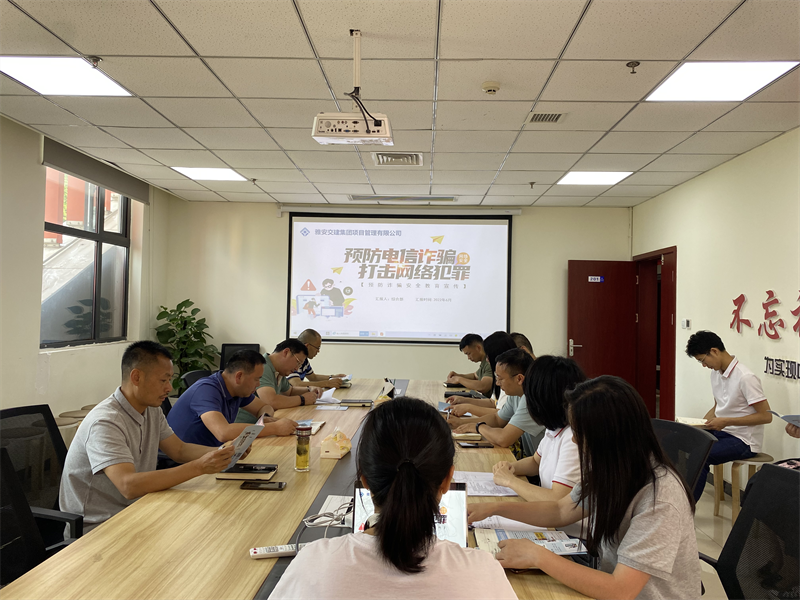 通過反詐騙知識宣講,進(jìn)一步增強(qiáng)了員工防騙意識。項(xiàng)目公司將通過深入各項(xiàng)目發(fā)放宣傳資料、觀看反詐視頻等多種宣傳形式,持續(xù)開展反詐宣傳工作,有效提升全體員工防詐反詐意識,筑牢預(yù)防電信詐騙案件防線,切實(shí)維護(hù)公司和員工財產(chǎn)安全。
