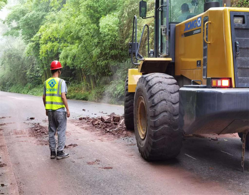 災(zāi)情發(fā)生后,交建路橋公司省道104改建工程項目部應(yīng)望魚鎮(zhèn)抗洪搶險應(yīng)急指揮部要求,立即啟動抗洪搶險應(yīng)急預(yù)案,由20余名現(xiàn)場施工人員組成的搶險隊伍兵分三路,投入挖機(jī)2臺、裝載機(jī)2臺、水車1臺、皮卡車2輛,圓滿完成雅趙路多處塌方和曹萬村、嫣溪溝村等村道泥石流及邊坡坍塌土石方清理工作,及時恢復(fù)道路交通,受到當(dāng)?shù)攸h委政府和村民一致好評。