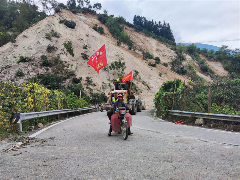 9月5日,項(xiàng)目經(jīng)理吳學(xué)林同志帶領(lǐng)突擊隊(duì)率先抵達(dá)G108線菩薩崗。一次次余震攔不住他們的腳步,一聲聲哀嚎更堅(jiān)定了他們逆行的決心。在通訊受阻的情況下,緊急調(diào)配2臺(tái)挖掘機(jī)、1臺(tái)推土機(jī)自G108線又轉(zhuǎn)戰(zhàn)新民鄉(xiāng),在受災(zāi)嚴(yán)重的X067縣道開展道路搶通以及救援工作。在搶險(xiǎn)一線,飛石及塌方的風(fēng)險(xiǎn)時(shí)刻危及著救災(zāi)人員的自身安全。“一定要多觀察!首先要保證自己的安全才能更好地完成搶險(xiǎn)工作!”項(xiàng)目經(jīng)理吳學(xué)林同志、項(xiàng)目工程部副部長(zhǎng)李健同志在轟鳴的搶險(xiǎn)現(xiàn)場(chǎng)喊破嗓子指揮著各類機(jī)具搶險(xiǎn)作業(yè)。待通訊恢復(fù)后,吳學(xué)林同志一邊組織現(xiàn)場(chǎng)搶險(xiǎn),一邊實(shí)時(shí)逐級(jí)上報(bào)受災(zāi)和搶險(xiǎn)情況,與第一時(shí)間趕來的集團(tuán)公司和路橋公司現(xiàn)場(chǎng)指揮組,會(huì)商道路受阻情況,研究布置搶險(xiǎn)保通工作。緊接著,石棉項(xiàng)目部搶險(xiǎn)人員來不及片刻休息,馬不停蹄地投入到一處處塌方、受阻道路搶通中。