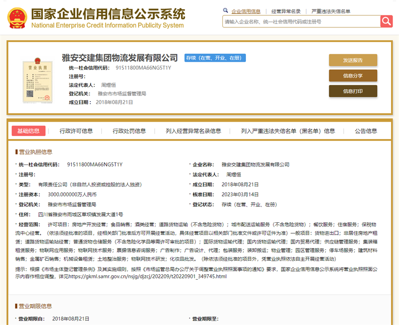 3月14日,經(jīng)市場監(jiān)督管理部門核定,雅安交建集團(tuán)無水港物流有限責(zé)任公司正式變更為雅安交建集團(tuán)物流發(fā)展有限公司,標(biāo)志著公司改革發(fā)展邁出新的步伐。