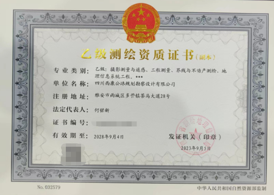 近日,經(jīng)四川省測繪地理信息局批準,雅安交建集團西康勘察設(shè)計有限公司取得測繪乙級資質(zhì)證書,標志著公司在經(jīng)營產(chǎn)業(yè)多元化和專業(yè)化發(fā)展上取得重要突破。