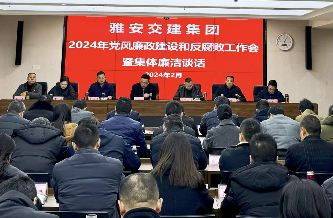 為深入學(xué)習(xí)貫徹習(xí)近平總書記關(guān)于黨的自我革命的重要思想,認(rèn)真貫徹落實(shí)二十屆中央紀(jì)委三次全會(huì)、省紀(jì)委十二屆三次全會(huì)和市紀(jì)委五屆四次全會(huì)精神,2024年2月22日,雅安交建集團(tuán)召開2024年黨風(fēng)廉政建設(shè)和反腐敗工作會(huì)暨集體廉潔談話,總結(jié)回顧去年工作,分析當(dāng)前面臨的形勢(shì)和問題,安排部署2024年黨風(fēng)廉政建設(shè)和反腐敗工作,并開展集體廉潔談話。