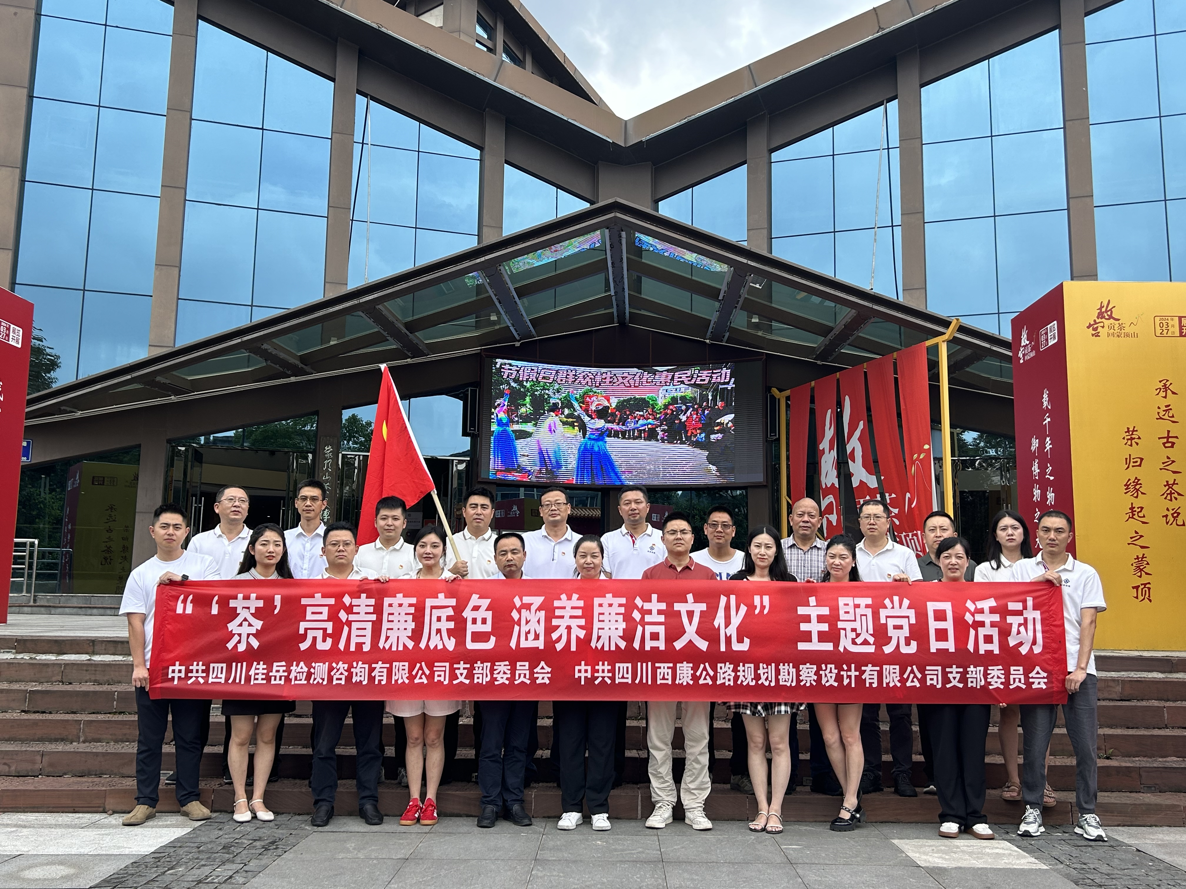 為持續(xù)推動黨紀學(xué)習(xí)教育走深走實,鞭策黨員干部把學(xué)習(xí)的成效轉(zhuǎn)化為干部履職的實效,7月16日,佳岳公司黨支部聯(lián)合西康設(shè)計公司黨支部赴名山區(qū)茶史博物館開展“‘茶’亮清廉底色 涵養(yǎng)廉潔文化”主題黨日活動。