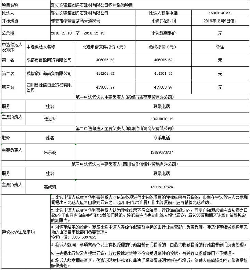 雅安交建集團(tuán)丹石建材有限公司鋼材采購項(xiàng)目比選公示