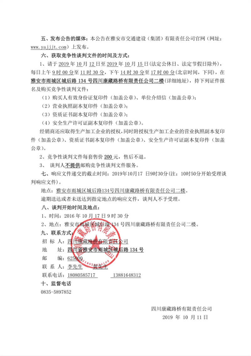 四川康藏路橋有限責(zé)任公司國(guó)道351線磽磧至夾金山段路面改造工程防護(hù)網(wǎng)采購(gòu)競(jìng)爭(zhēng)性談判公告