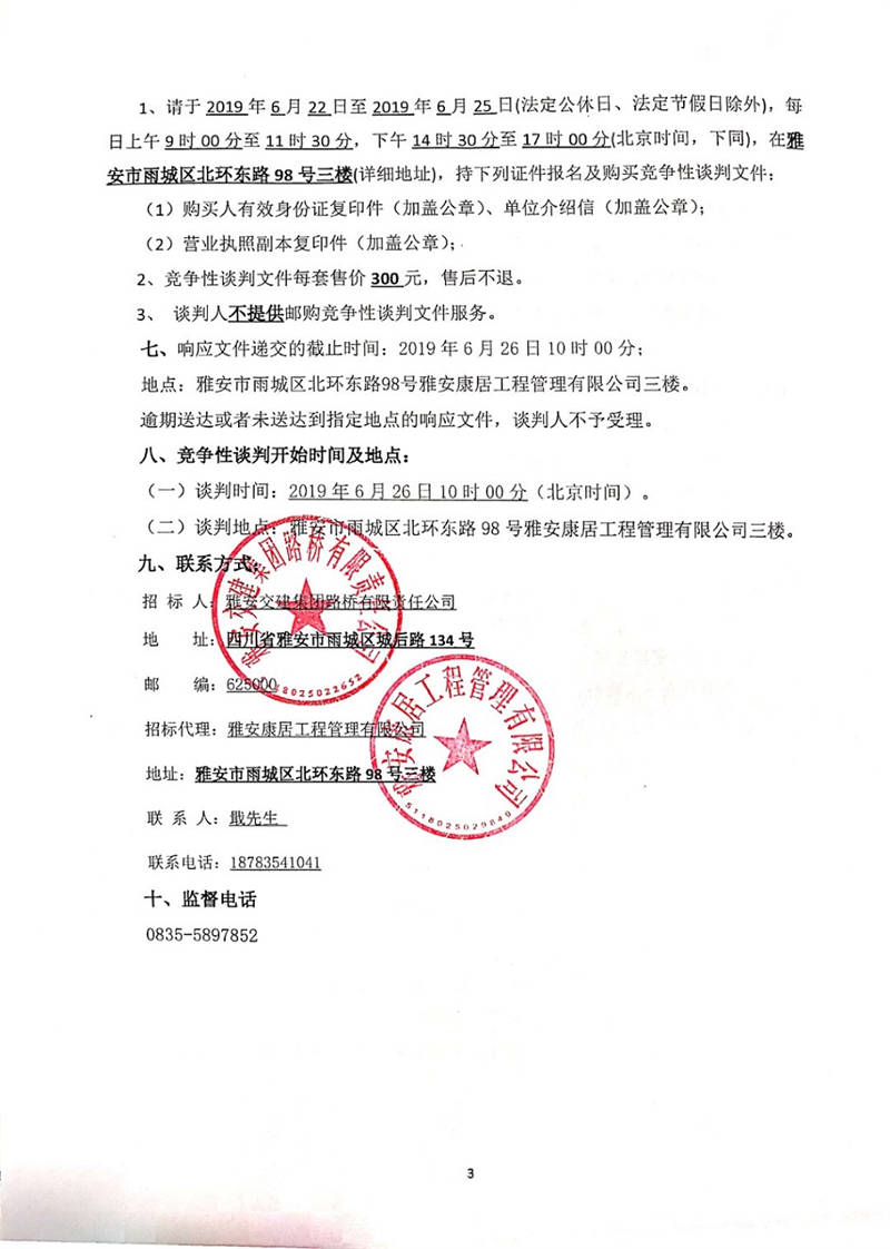 雅安交建集團(tuán)路橋有限責(zé)任公司國道351線磽磧至夾金山路面改造工程防裂卷材采購競爭性談判公告