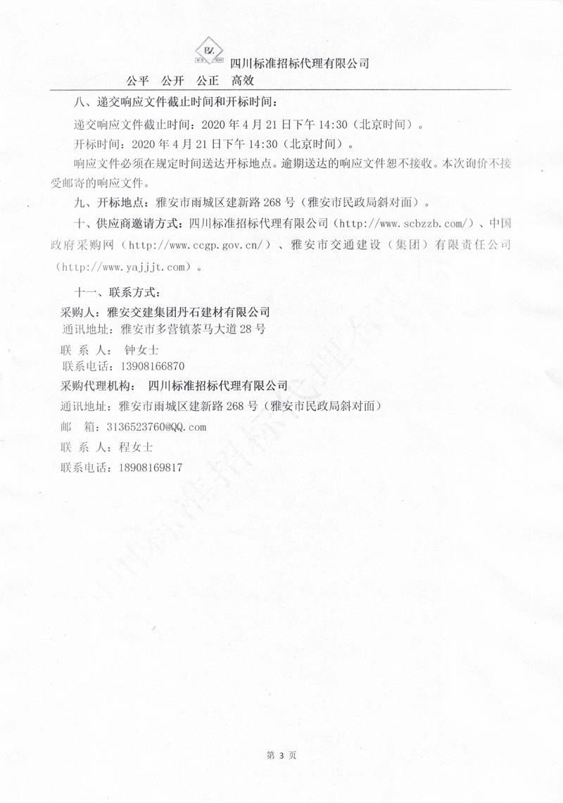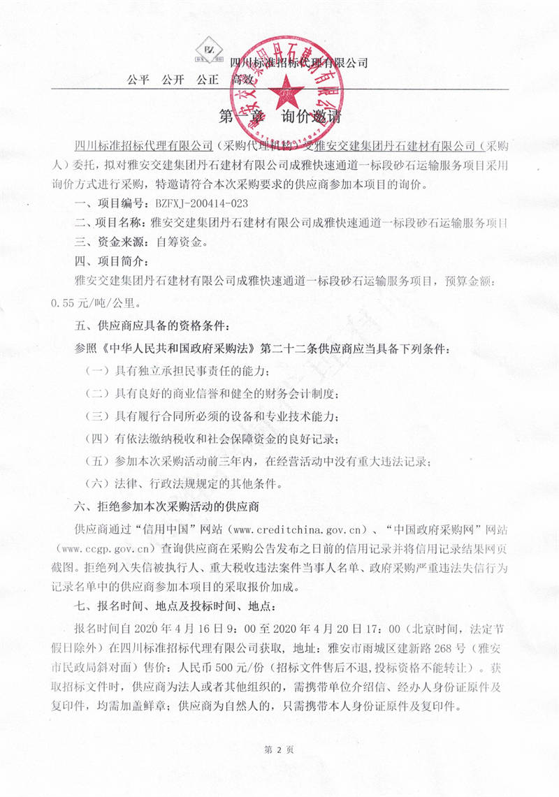 雅安交建集團丹石建材有限公司成雅快速通道一標(biāo)段砂石運輸服務(wù)項目詢價公告