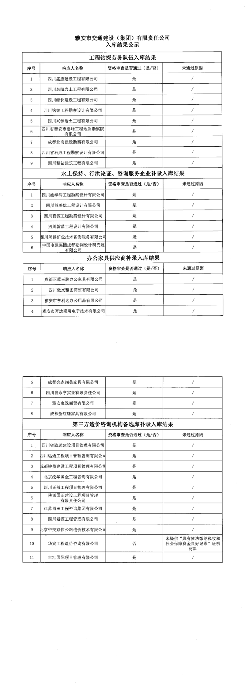雅安市交通建設(shè)(集團)有限責(zé)任公司入庫結(jié)果公示