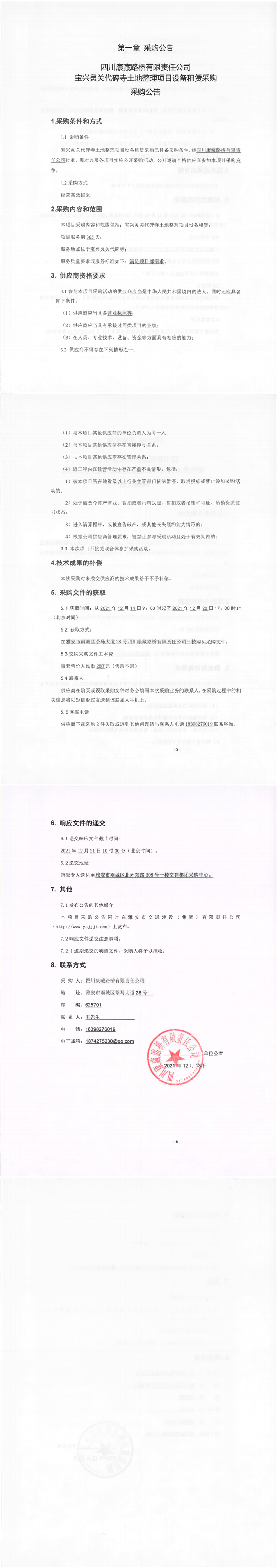 四川康藏路橋有限責(zé)任公司寶興靈關(guān)代碑寺土地整理項(xiàng)目設(shè)備租賃采購采購公告