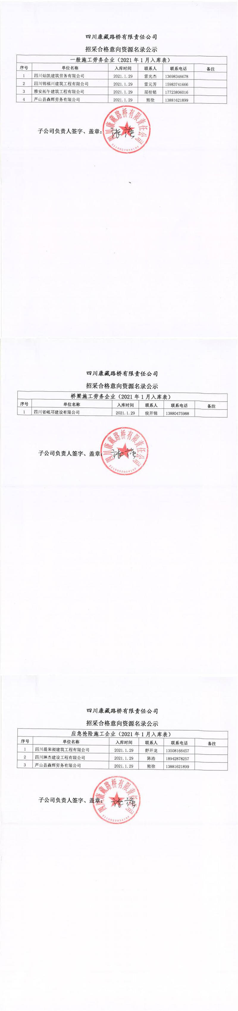 四川康藏路橋有限責(zé)任公司招采合格意向資源名錄公示