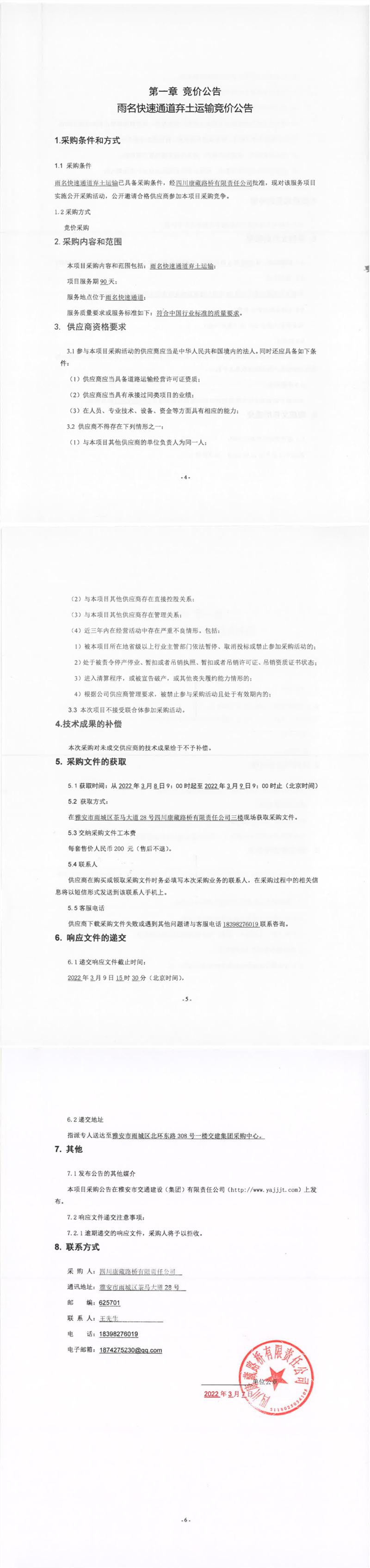 四川康藏路橋有限責任公司雨名快速通道棄土運輸競價公告