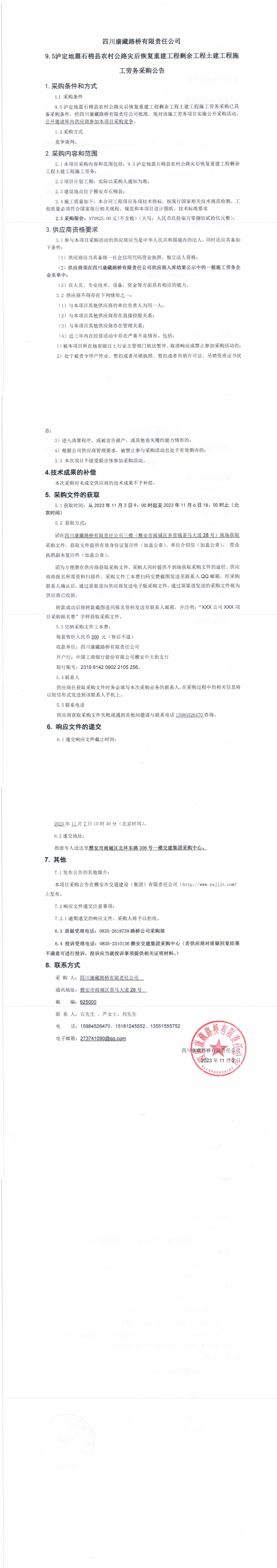 四川康藏路橋有限責(zé)任公司 9.5瀘定地震石棉縣農(nóng)村公路災(zāi)后恢復(fù)重建工程剩余工程土建工程施工勞務(wù)采購公告