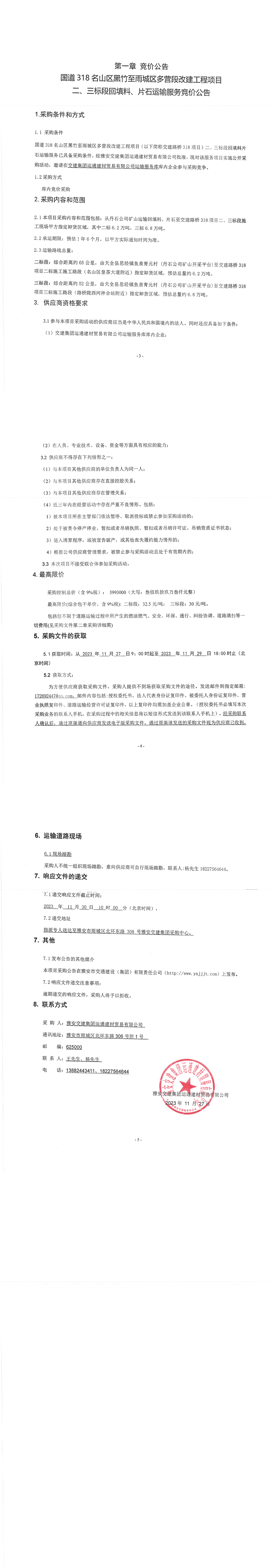 交建集團(tuán)運(yùn)通建材貿(mào)易有限公司國道318名山區(qū)黑竹至雨城區(qū)多營段改建工程項(xiàng)目二、三標(biāo)段回填料、片石運(yùn)輸服務(wù)競價公告