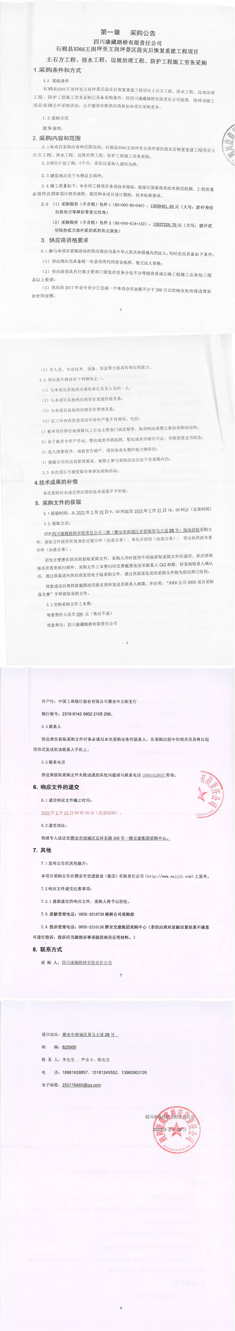 四川康藏路橋有限責(zé)任公司石棉縣X066王崗坪至王崗坪景區(qū)段災(zāi)后恢復(fù)重建工程項目土石方工程、排水工程、邊坡治理工程、防護(hù)工程施工勞務(wù)采購公告