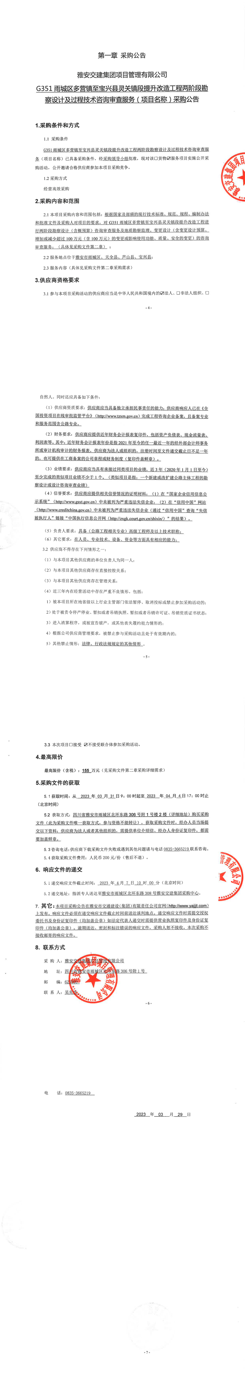 雅安交建集團項目管理有限公司G351雨城區(qū)多營鎮(zhèn)至寶興縣靈關(guān)鎮(zhèn)段提升改造工程兩階段勘察設(shè)計及過程技術(shù)咨詢審查服務(wù)(項目名稱)采購公告