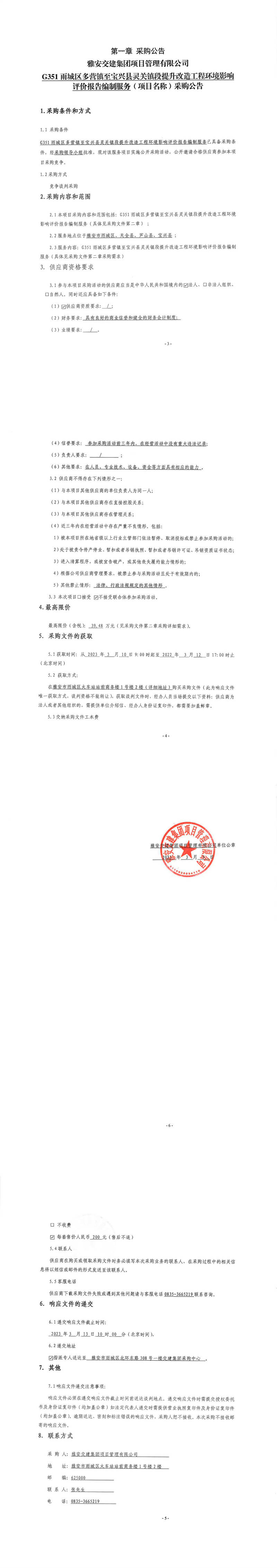 雅安交建集團(tuán)項(xiàng)目管理有限公司G351雨城區(qū)多營(yíng)鎮(zhèn)至寶興縣靈關(guān)鎮(zhèn)段提升改造工程環(huán)境影響評(píng)價(jià)報(bào)告編制服務(wù)(項(xiàng)目名稱)采購(gòu)公告