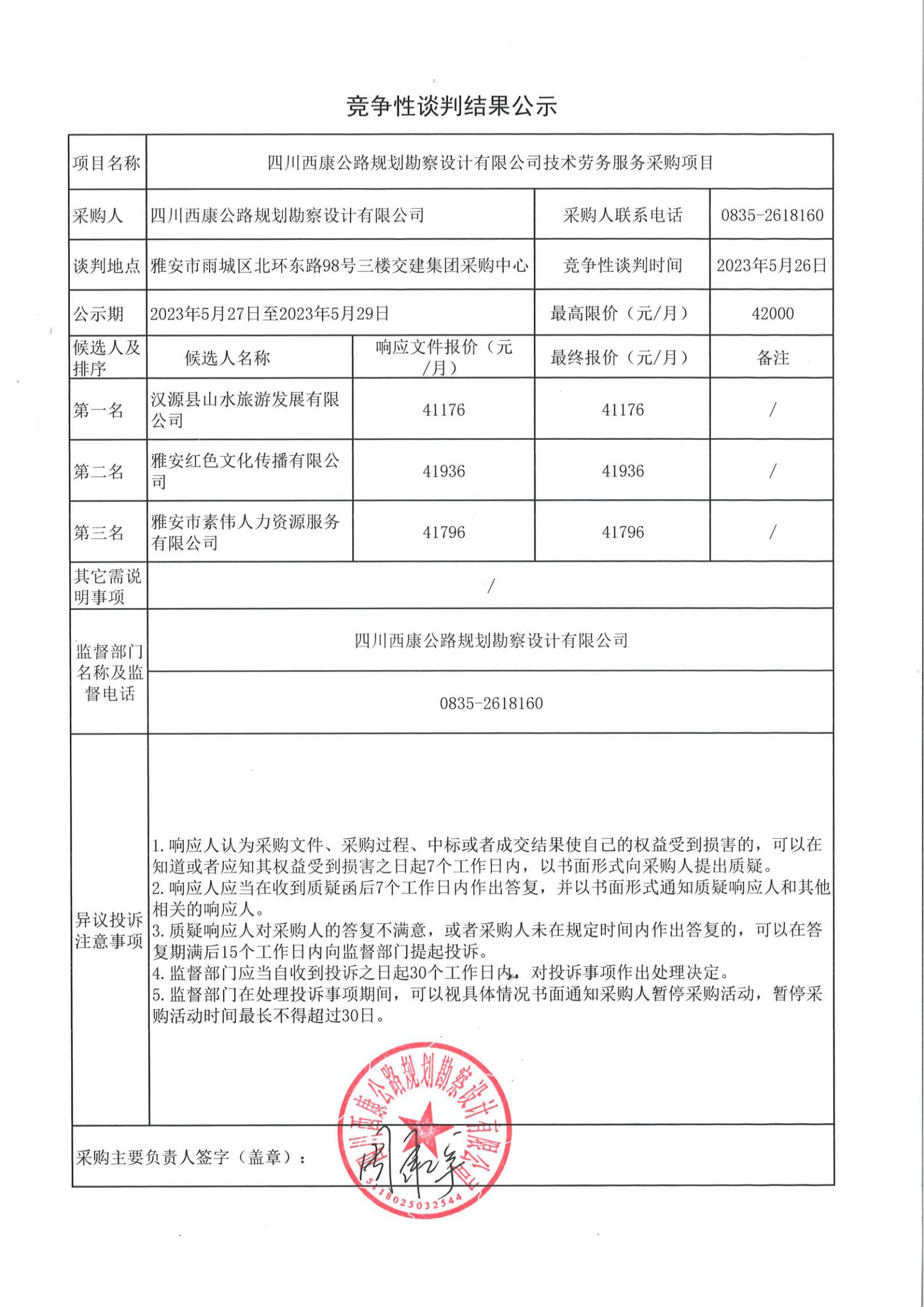 四川西康公路規(guī)劃勘察設計有限公司技術勞務服務采購結果公示