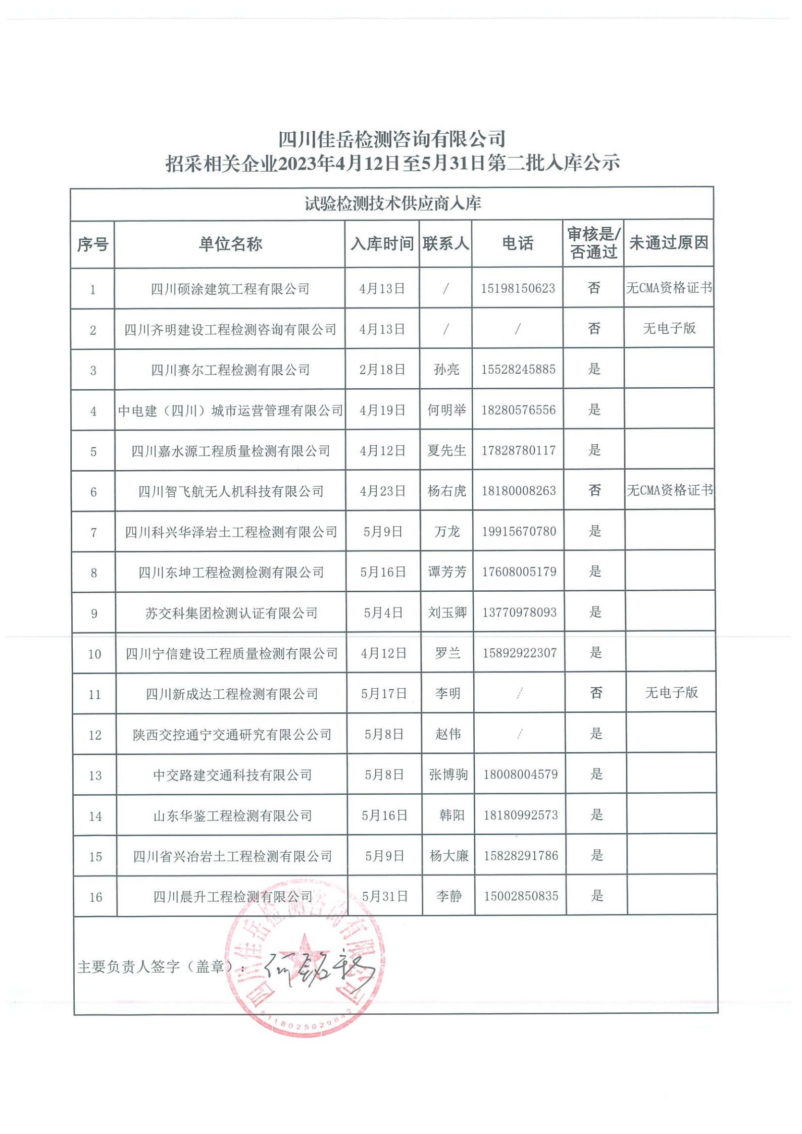 四川佳岳檢測(cè)咨詢有限公司(試驗(yàn)檢測(cè)技術(shù)供應(yīng)商庫(kù))2023年4月12日至5月31日第二批入庫(kù)結(jié)果公示