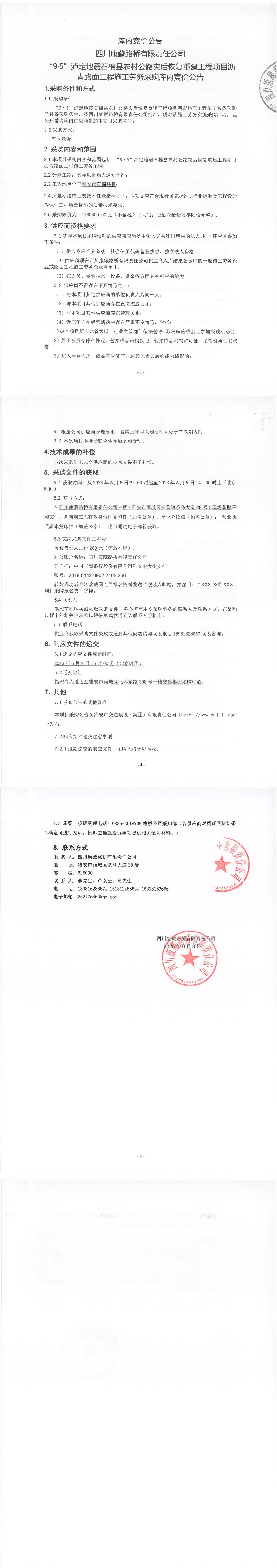四川康藏路橋有限責任公司“9·5”瀘定地震石棉縣農(nóng)村公路災后恢復重建工程項目瀝青路面工程施工勞務采購庫內競價公告