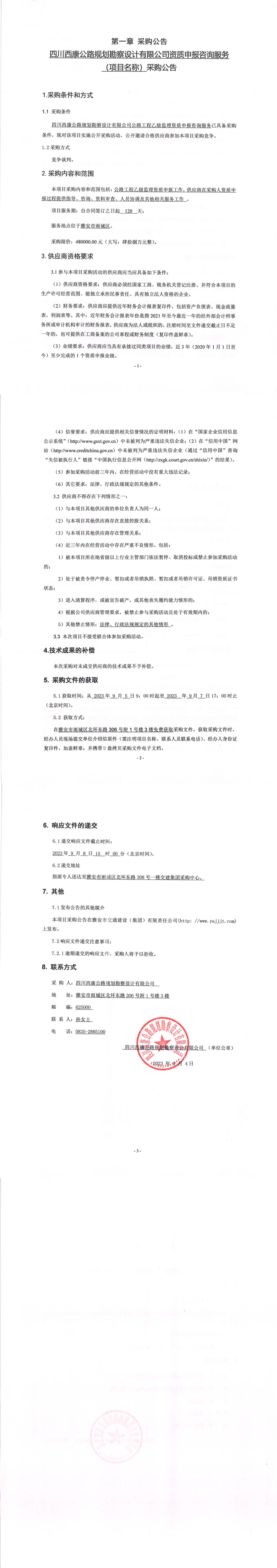 四川西康公路規(guī)劃勘察設計有限公司資質申報咨詢服務(項目名稱)采購公告