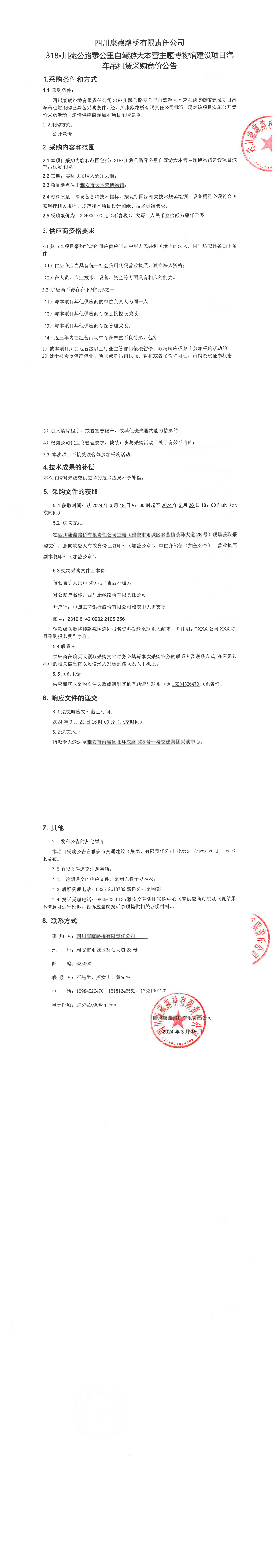 四川康藏路橋有限責(zé)任公司318•川藏公路零公里自駕游大本營主題博物館建設(shè)項(xiàng)目汽車吊租賃采購競(jìng)價(jià)公告
