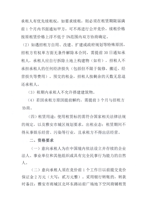 雅安交建資產(chǎn)經(jīng)營管理有限公司雨名快速通道黑碾子場地招租公告