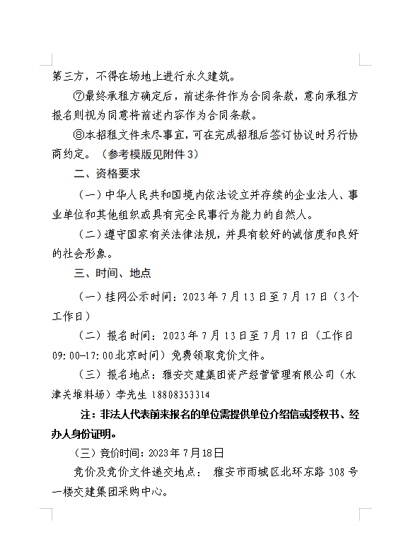 雅安交建集團資產(chǎn)經(jīng)營管理有限公司 雅安市雨城區(qū)大興鎮(zhèn)水津關(guān)堆料場龍溪村四組和八組部分閑置臨時用地招租公告附件