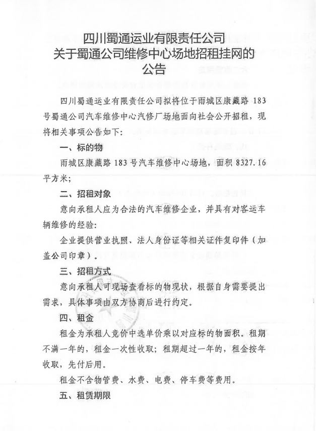 ËÄ´¨Êñͨß\˜I(y¨¨)ÓÐÏÞØŸ(z¨¦)Èι«Ë¾ êP(gu¨¡n)ÓÚÊñͨ¹«Ë¾¾SÐÞÖÐÐĈöµØÕÐ×â’ì¾W(w¨£ng)µÄ ¹«¸æ