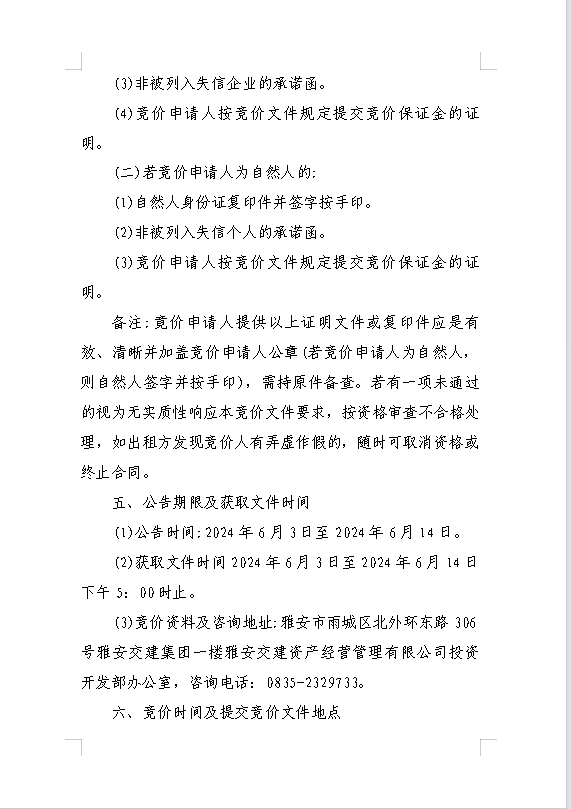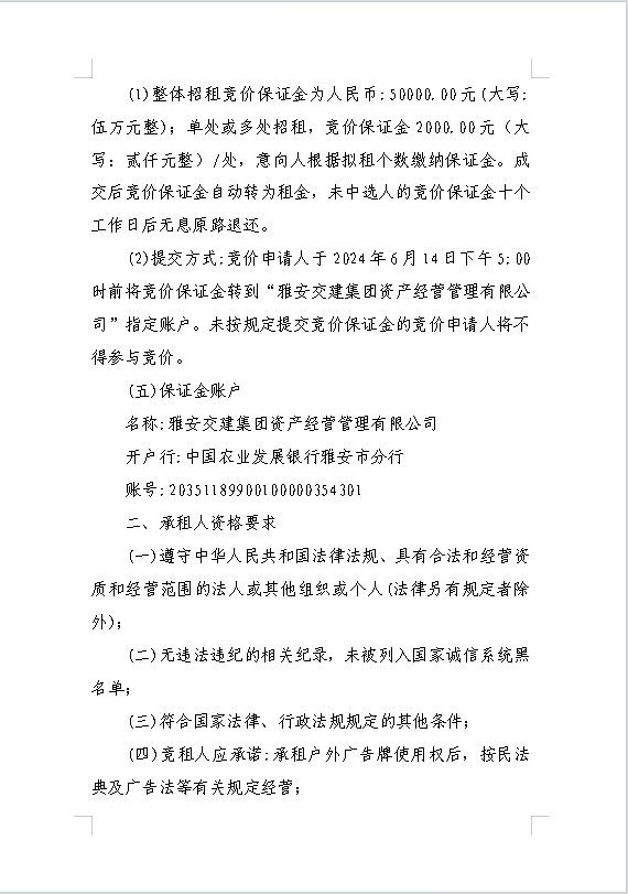 雅安交建集團資產經(jīng)營管理有限公司關于戶外廣告位競價招租的公告附件