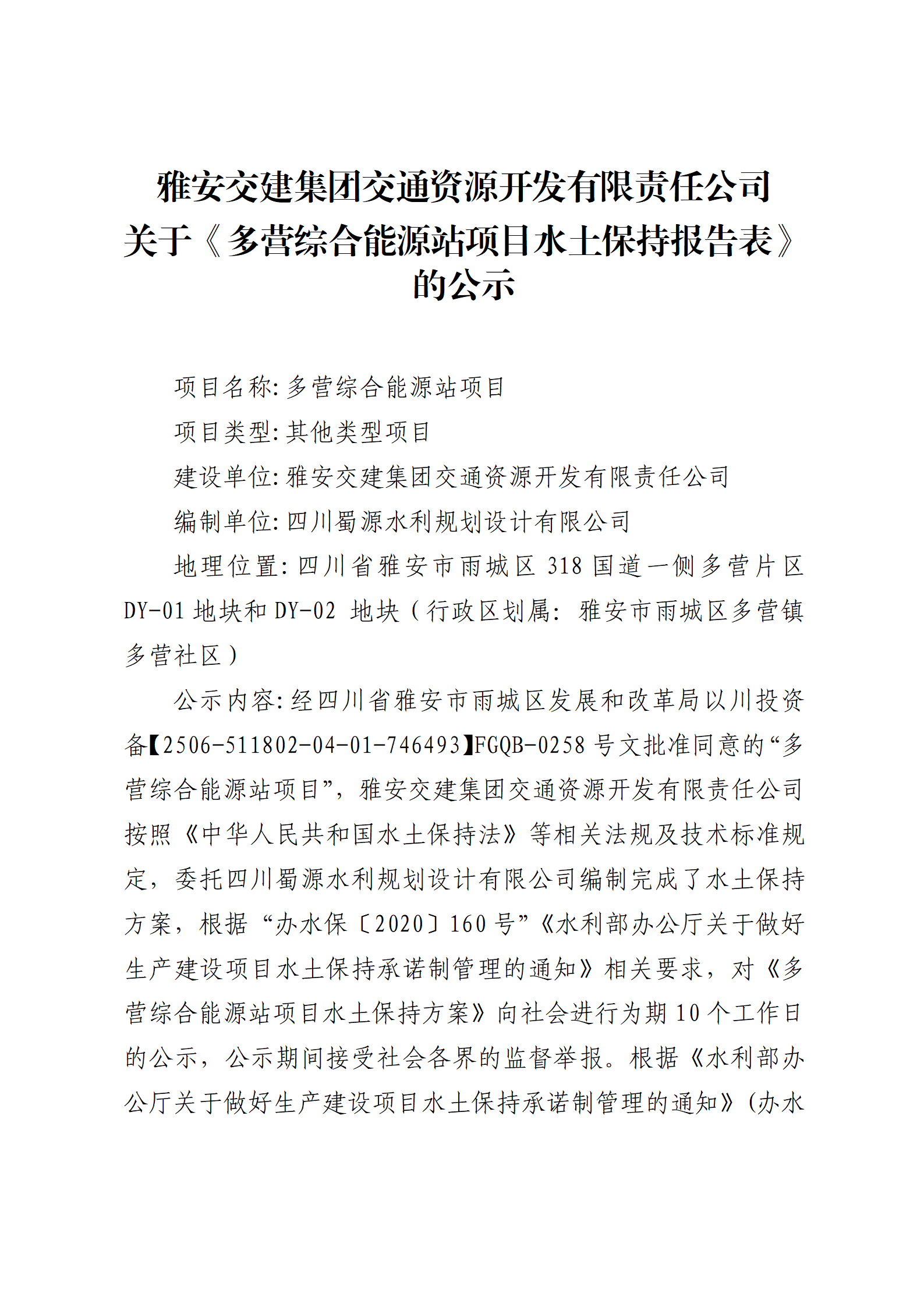 ÑŰ²½»½¨¼¯ˆF½»Í¨ÙYÔ´é_°l(f¨¡)ÓÐÏÞØŸÈι«Ë¾ êPÓÚ¡¶¶à I¾CºÏÄÜÔ´Õ¾í—ĿˮÍÁ±£³Öˆó¸æ±í¡·µÄ¹«Ê¾