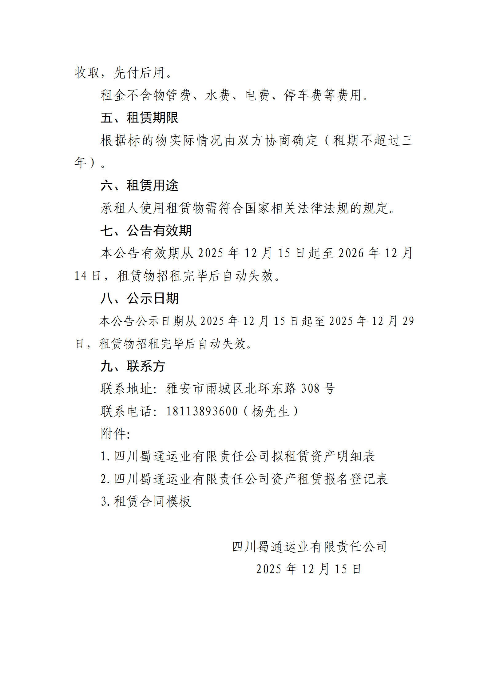 四川蜀通運業(yè)有限責(zé)任公司關(guān)于蜀通公司各區(qū)縣閑置房屋商鋪場地掛網(wǎng)招租的公告