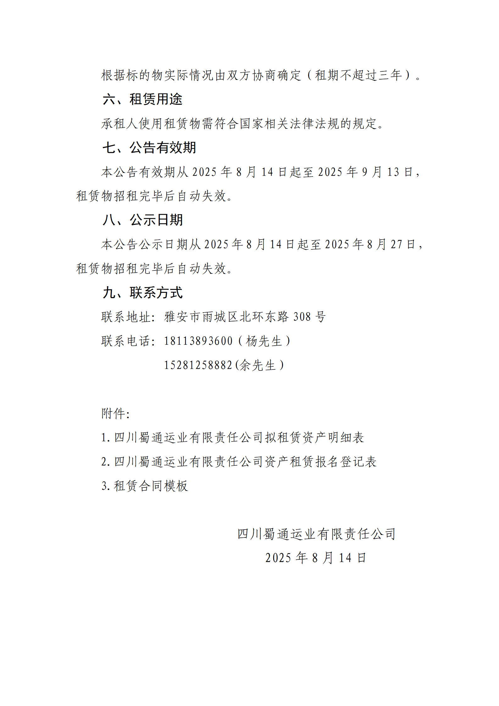 四川蜀通運(yùn)業(yè)有限責(zé)任公司 關(guān)于九襄汽車站出口右側(cè)維修車間旁邊閑置場地進(jìn)行掛網(wǎng)招租的公告