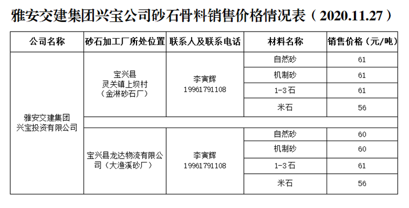 ÑŰ²½»½¨¼¯ˆF(tu¨¢n)ÔÆÊ¯¹«Ë¾É°Ê¯¹ÇÁÏäNÊÛƒr(ji¨¤)¸ñÇé›r±í£¨2020.12.1£©