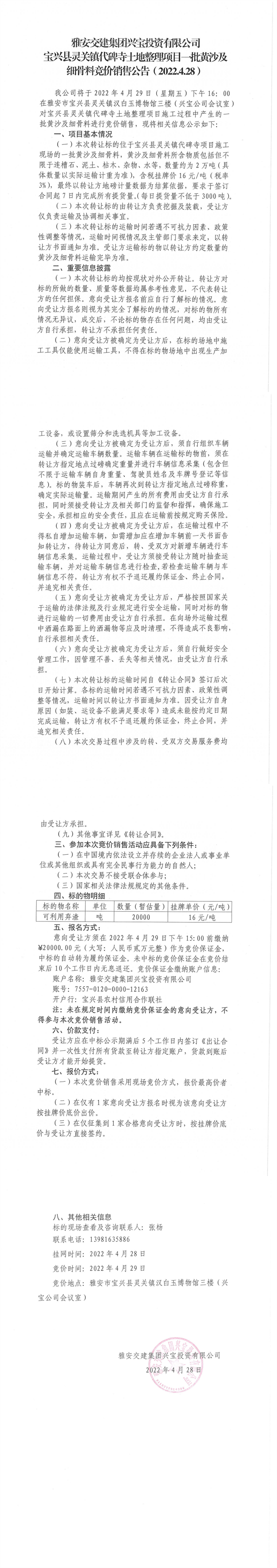 ÑŰ²½»½¨¼¯ˆF(tu¨¢n)ÅdŒšÍ¶ÙYÓÐÏÞ¹«Ë¾ŒšÅd¿hì`êP(gu¨¡n)æ‚(zh¨¨n)´ú±®ËÂÍÁµØÕûÀíí—(xi¨¤ng)ĿһÅúüSɳ¼°¼š(x¨¬)¹ÇÁϸ‚ƒr(ji¨¤)äNÊÛ¹«¸æ£¨2022.4.28£©